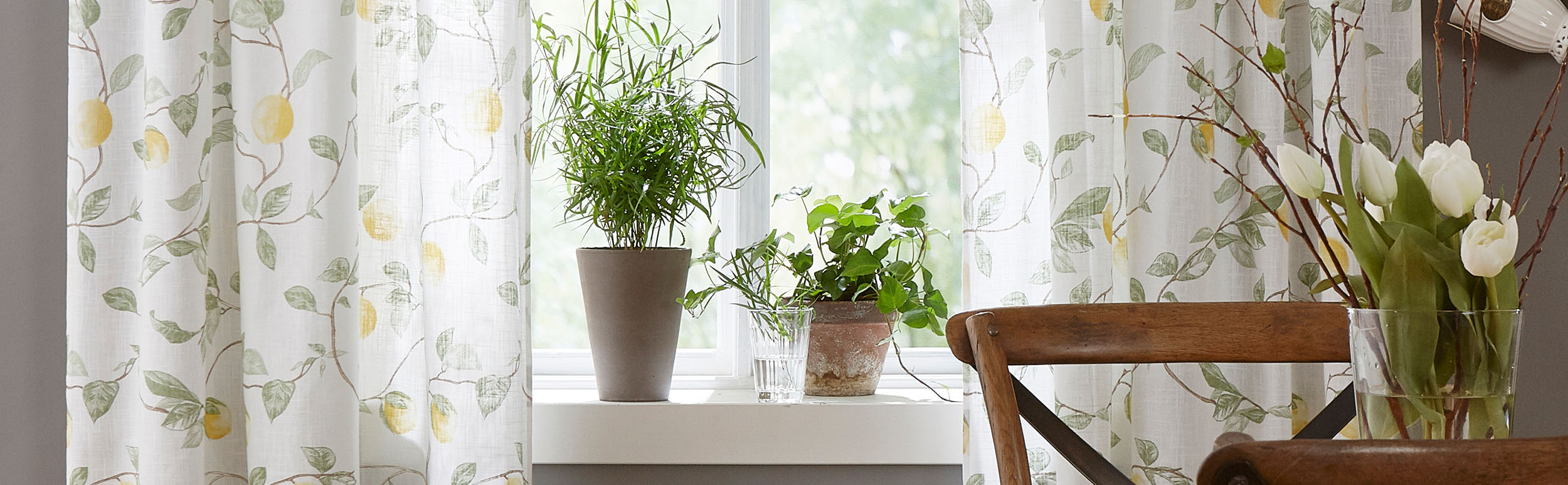For at du kan skabe en helhed, har vi lavet mønsteret Lemon i flere produkter: kanalgardin, panelgardin, kappemetervare, pudebetræk og roll-up gardin. Så kan du matche vinduet med detaljer i samme serie og få en sammenhængende følelse i rummet – uanset om du vil lade Lemon være en lille detalje eller en tydeligere del af din indretning.