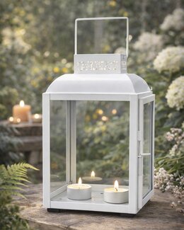 Skab en personlig og stemningsfuld dekoration med denne elegante lyslygte. Lygten har fire transparente glassider, hvor ...