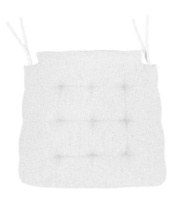Klassisk ensfarvet stolehynde med bindebånd af elastik, samt 9 pikeringer. Stof og fyld, 100 % polyester. Vaskes i hånden. Str. 42x39x4 cm.