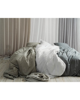 Stilfuldt og blødt stonewashed sengetøj med dekorativ denimsøm.