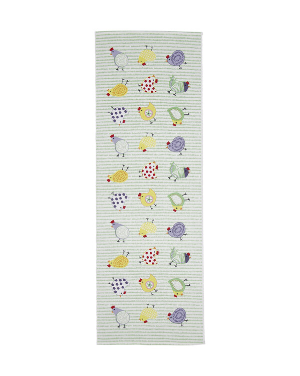 Skab en varm og festlig stemning til påsken med denne dekorative løber. Med et skønt kyllingemotiv og glade forårsfarver...