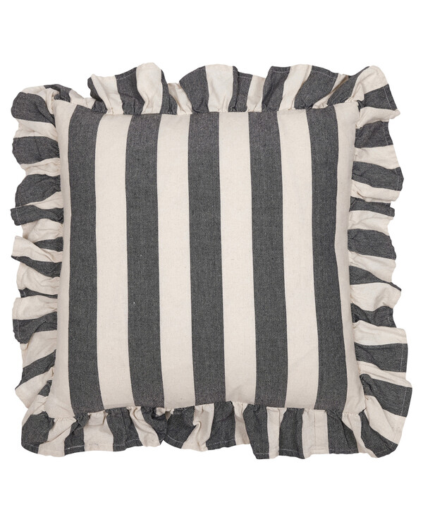 Gardiner > Farver > Sorte gardiner > Pudebetræk Amalia stribet med flæse 1-pak