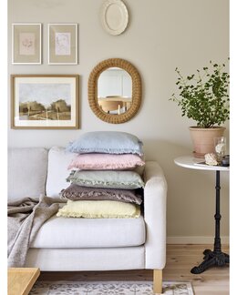 Giv din indretning et tidløst og elegant udtryk med vores ensfarvede pudebetræk, smukt indrammet med en dekorativ frynse...
