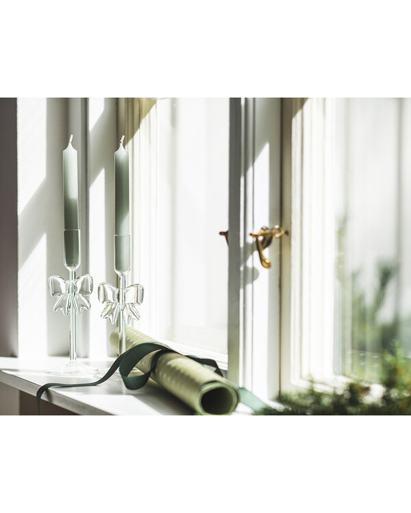 Skab julestemning med denne stilrene stage i klart glas, pyntet med en smuk sløjfe. Perfekt som dekoration på det dækkede bord, i vinduet eller som en fin julegave.