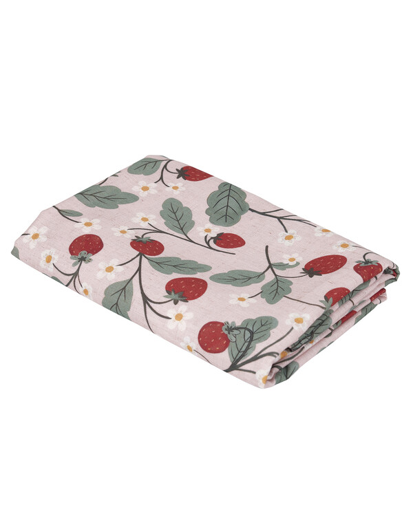 Skab en legende og sommerlig stemning ved bordet med denne dug dekoreret med jordbær på en lyserød baggrund. Perfekt til varme dage, udendørs kaffepauser eller sommerens middage. Passer lige godt til hverdagen som til mere festlige lejligheder.