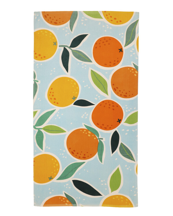 Giv stranddagen et ekstra farvepift med dette strandhåndklæde i blød velour med et skønt appelsinmotiv i klare, sommerli...