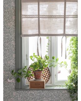 Vidunderligt roll-up gardin med smuk blonde detalje i landlig romantisk stil. Kombiner gerne med gardinkappe og længder ...