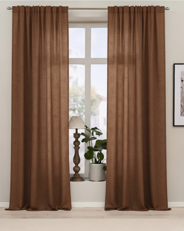 Lidt tyndere gardinlængder med en dekorativ struktur, der minder om hør og giver dit hjem en stilfuld stemning med en god balance mellem lysindfald og privatliv.